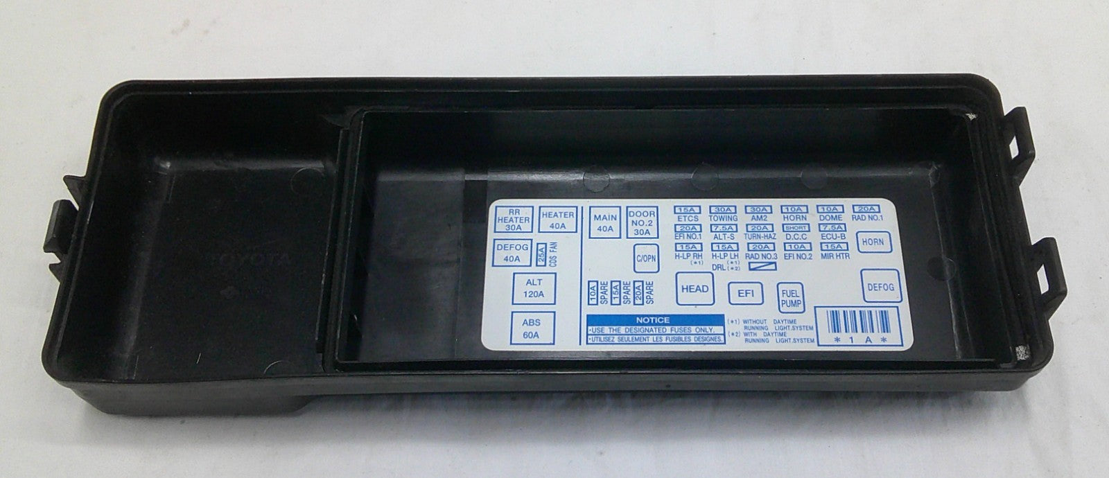 2001 - 2003 Toyota Sequoia Fuse Junction Cover Block 82672-0C020. This is a genuine Toyota OEM part, not the cheap aftermarket stuff. The relay cover has been thoroughly inspected and is in good used shape. We offer a money back guarantee. Please contact us with any questions that you may have.